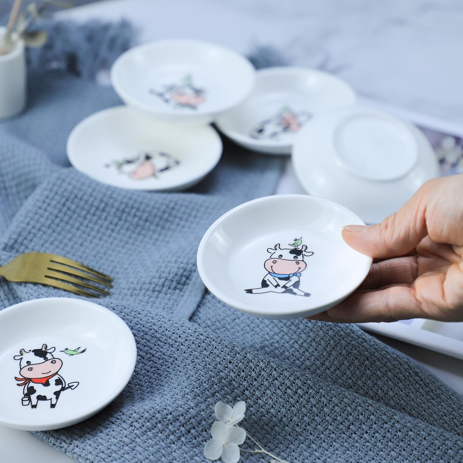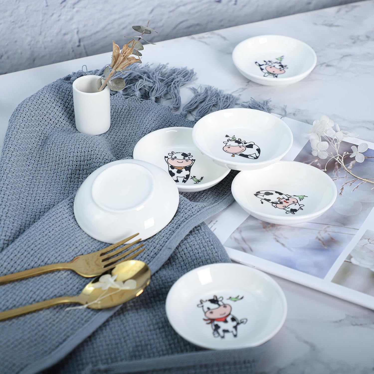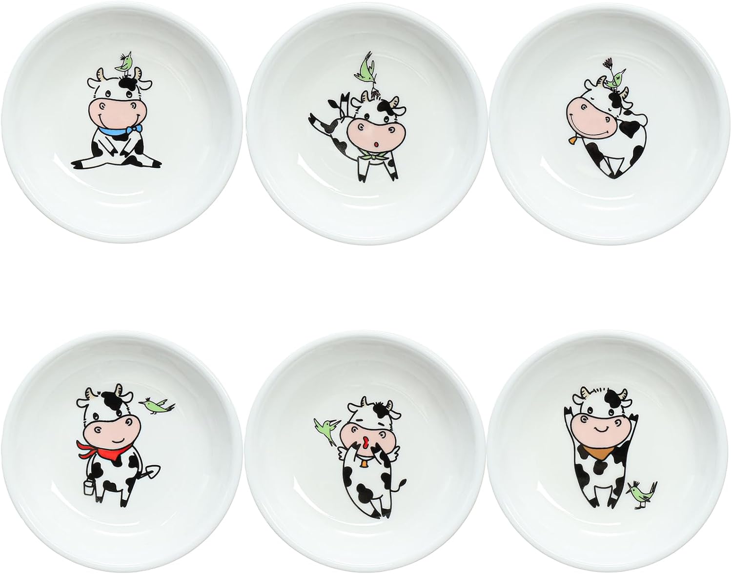 6 - Piece 3.5 - Inch Ceramic Dipping Bowls: Adorable Cow - Themed Tableware for Sauces & Snacks