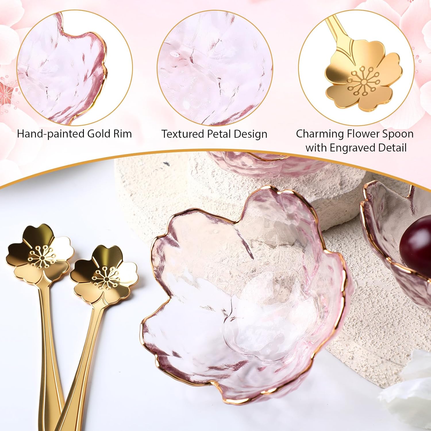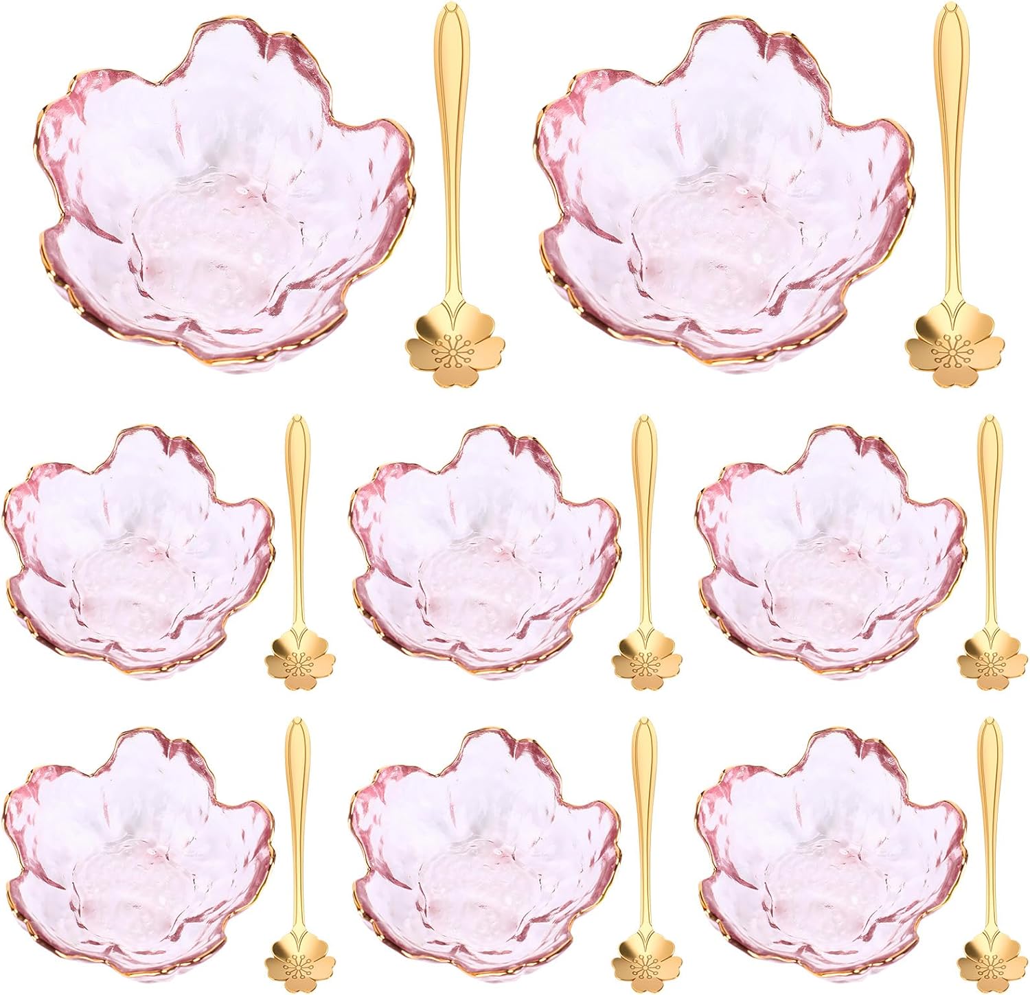 8-Piece Pink Petal Glass Bowl & Spoon Set ā Mini Dessert Bowls, Elegant Tableware for Snacks, Sauces & Ice Cream